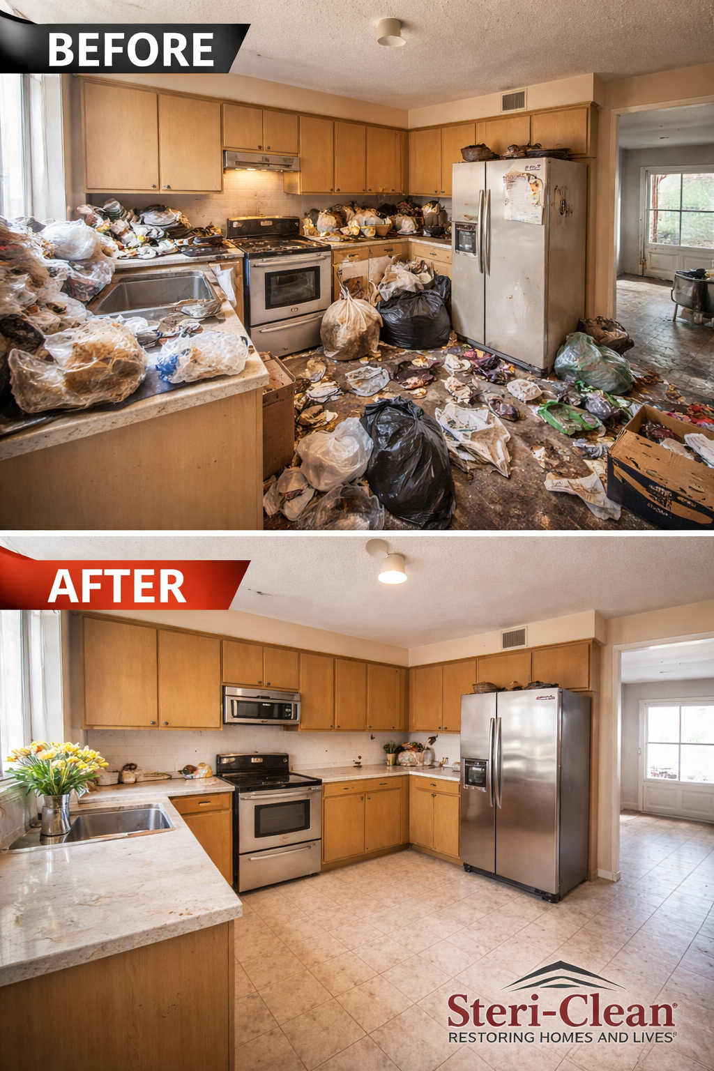 Before and After Hoarded Kitchen